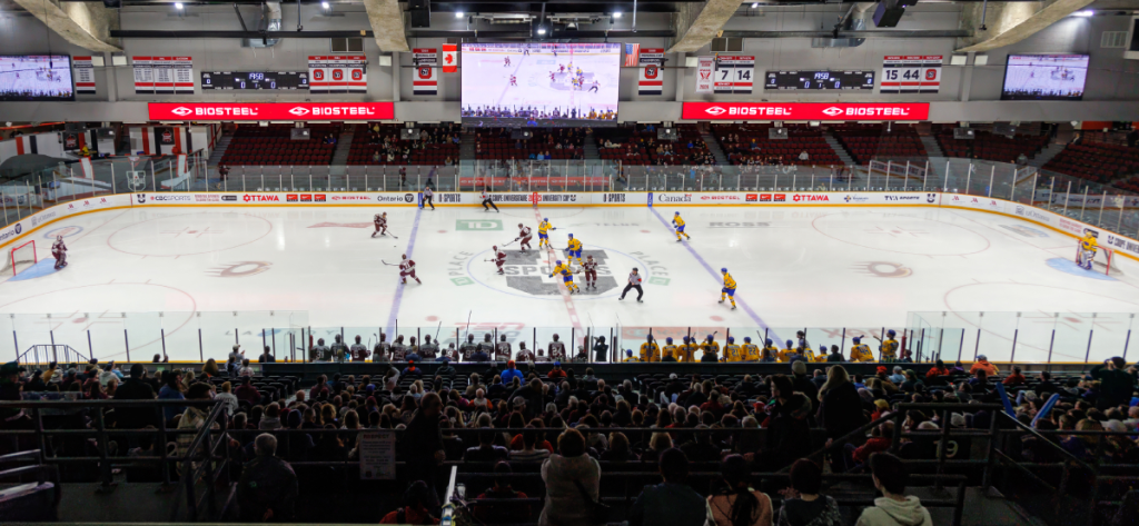 TD Place crowd for the uOttawa Gee-Gees’ national men’s hockey championships semi-final on Mar. 22. Photo: Derek Mellon