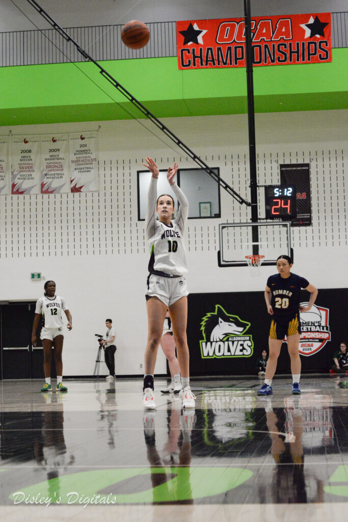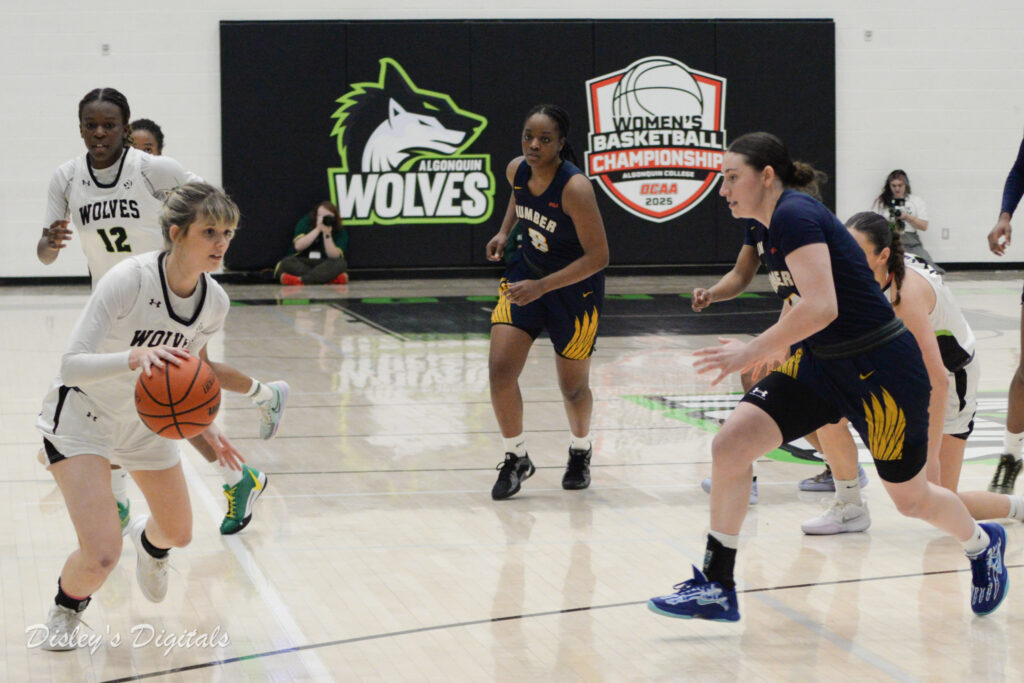 Photos taken by Isabella Disley at the OCAA basketball semifinals versus the Humber Hawks in the Jack Doyle Athletic and Recreation Complex on February 28, 2025.